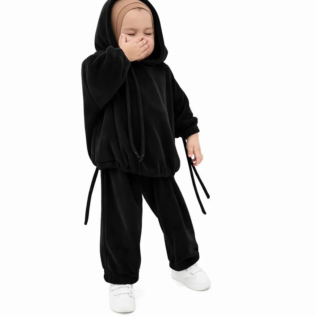 طقم Kity هو لباس طفولي محتشم صُمّم خصيصًا ليجمع بين الراحة، الأناقة، والحشمة في إطلالة واحدة. يتميز هذا الطقم بخامته المخملية الناعمة التي تمنح إحساسًا دافئًا ولطيفًا على بشرة الطفل، ما يجعله مثاليًا لفصل الخريف والشتاء. يتكوّن من قطعتين متناسقتين مع قبعة (هودي) تضيف لمسة عصرية وجذابة، مع تصميم واسع يسمح بحرية الحركة واللعب دون أي إزعاج. طقم Kity مناسب للاستعمال اليومي، الخروج، أو المناسبات العائلية، كما يعكس ذوقًا راقيًا للأمهات اللواتي يحرصن على لباس محتشم وأنيق لبناتهن في نفس الوقت. 💜