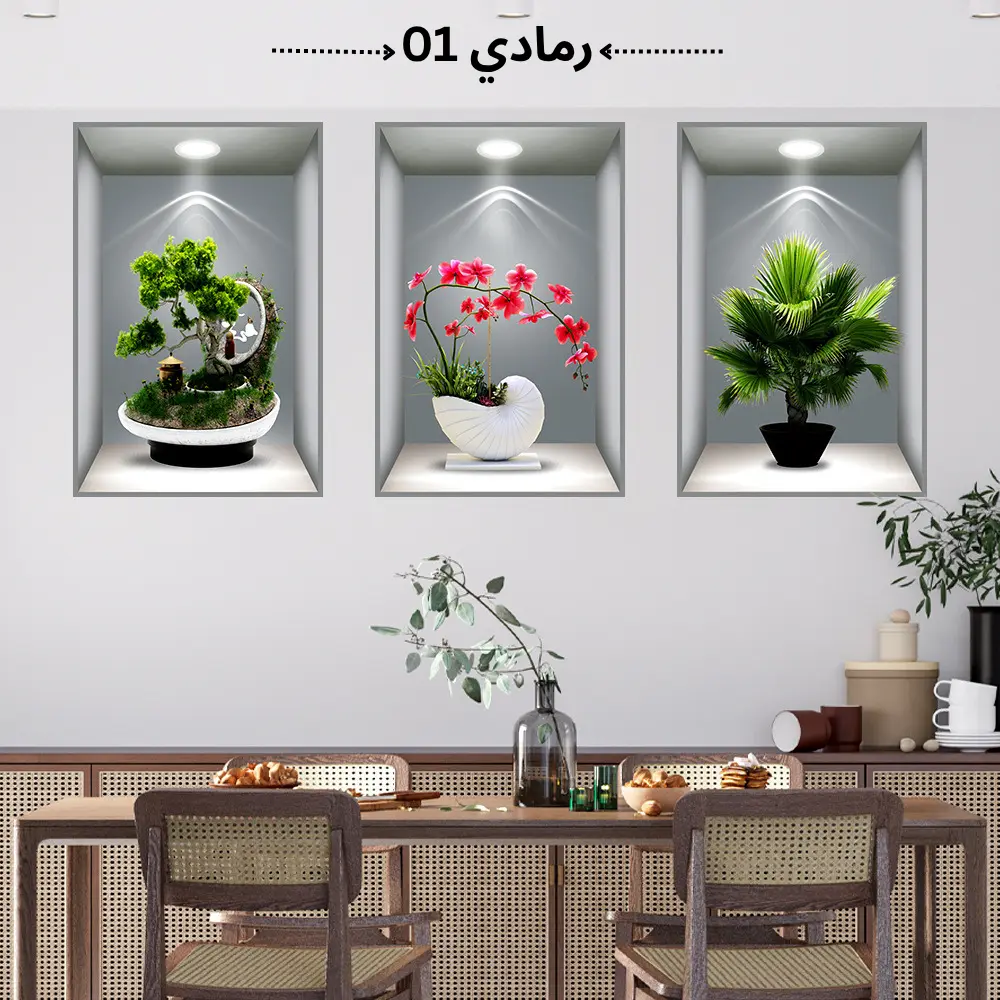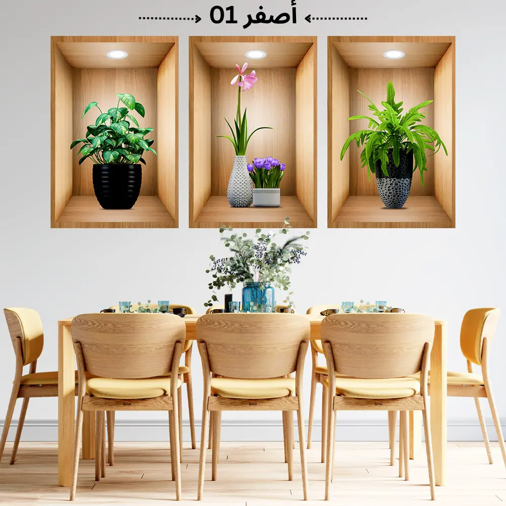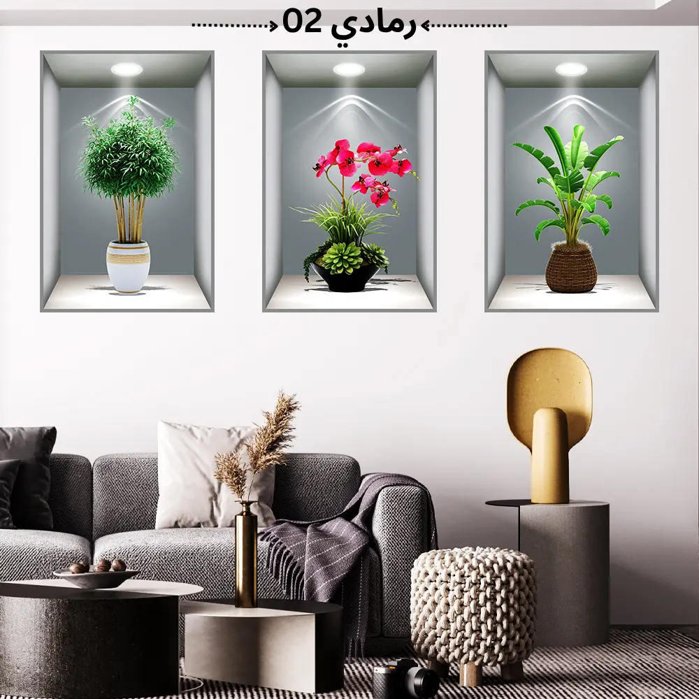 ملصقاتنا ثلاثية الأبعاد بتصميم نباتات وزهور تمنحك ديكوراً مميزاً وواقعيًا وكأنك وضعت أحواضًا حقيقية داخل منزلك.
